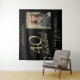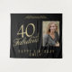 Tapeçaria elegante de preto e dourado para fotos de 40 anos e fabuloso. Texto de 40 e fabuloso em script dourado na moda em fundo preto. Personalize com sua foto, seu nome e idade, e crie seu próprio pano de fundo para festa de aniversário elegante para a festa de aniversário da mulher.