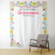 Fundo colorido de Quinceanera para fotos, personalizado com seu nome e data de celebração. Esta grande tapeçaria branca é um ótimo tamanho para o fundo do seu estúdio fotográfico para tirar fotos preciosas de você e seus convidados. As flores da Fiesta Mexicana criam uma adorável moldura floral para o seu fundo de fotos. Este design é perfeitamente adequado para qualquer festa temática de Fiesta Mexicana e o texto pode ser editado para qualquer outra idade. Certifique-se de verificar minha coleção de Flores da Fiesta Mexicana para convites, suprimentos e presentes de festa coordenados.
