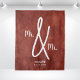 Pano de fundo de casamento gay Sr. e Sr. personalizado com o sobrenome ou nomes deles e a data do evento ou ano estabelecido. Design com um fundo estilo terracota com um estilo elegante mas moderno para uma festa de casamento, recepção ou para decorações da parede da cerimônia.