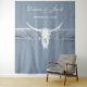 Pano de fundo rustico poeira azul branco touro crânio de vaca país western cowboy casamento recepção photobooth. Estilo de casa de fazenda vintage impresso textura desgastada. Estilo do velho oeste adereço de casamento antigo. Design moderno e trendy de animal de fazenda. Personalize seu roteiro. Direitos autorais da imagem Marg Seregelyi Photography.