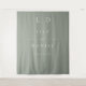 Este cenário verde minimalista de monograma de fotos de casamento pode ser personalizado com suas informações em tipografia quic. Projetado por Thisnotme©