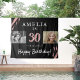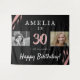 Elegante panorama de fundo preto para 30º aniversário 2. Fundo preto elegante com listras de aquarela rosa e texto branco. Nome personalizado, data, idade e texto de Feliz Aniversário. Use os tapetes como pano de fundo para a festa de 30º aniversário. Adicione suas fotos - foto antiga e foto nova. Personalize nome, data e idade.