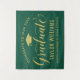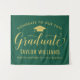 O painel de fundo da festa de formatura elegante felicita e celebra seu formando em estilo! Design apresenta um boné de formando, "Formando" no script e um texto personalizado moderno que pode ser personalizado com o nome do formando e a escola. As cores verde escuro e dourado podem ser personalizadas.