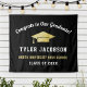 Parabenize seu graduado com estilo com um moderno letreiro de fundo de foto de festa de formatura personalizado, apresentando o ano da turma com um boné de graduação dourado e texto personalizado esportivo para o nome do graduado, escola e ano da turma. As cores preto, branco e dourado podem ser personalizadas para combinar com as cores da sua festa.