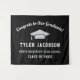 Parabenize seu graduado com estilo com um moderno letreiro de fundo de foto de festa de graduação personalizado, apresentando um boné de graduação prateado e texto personalizado esportivo para o nome do graduado, escola e ano de formatura. As cores preto, prata e branco podem ser personalizadas para combinar com as cores da sua festa.