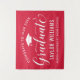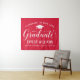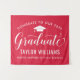 Elegante letreiro de fundo de festa de formatura parabeniza e celebra seu graduado com estilo! O design apresenta um gorro de graduação, "Graduado" em letra cursiva e texto personalizado moderno que pode ser personalizado com o nome do graduado e da escola. As cores vermelha e branca podem ser personalizadas.