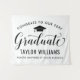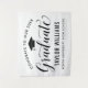 Elegante letreiro de fundo de festa de formatura parabeniza e celebra seu graduado com estilo! O design apresenta um gorro de graduação, "Graduado" em letra cursiva e texto personalizado moderno que pode ser personalizado com o nome e a escola do graduado. As cores preto e branco podem ser personalizadas.