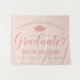 Sinal de fundo de festa de formatura elegante parabeniza e celebra seu graduado com estilo! O design apresenta um boné de graduação, "Graduado" em letra cursiva e texto personalizado moderno que pode ser personalizado com o nome do graduado e da escola. As cores rosa e dourado rosado podem ser personalizadas.
