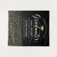O legante cenário de festa de formatura preta dois formandos apresentam um boné de formando de folha de ouro falso, "Formandos" em branco e texto personalizado moderno que pode ser personalizado com os nomes dos formandos e escolas. Um padrão de ouro caindo confete se veste em segundo plano - apoio perfeito para os convidados da festa ficarem em frente a fotos com o formando! Vários tamanhos estão disponíveis.