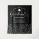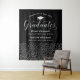 O legante cenário de festa de formatura preta dois formandos apresentam um boné de formando branco, "Formandos" em falso roteiro prateado e texto personalizado moderno que pode ser personalizado com os nomes e escolas dos formandos. Um padrão de prata caindo confete veste o fundo - apoio perfeito para os convidados da festa ficarem diante de fotos com o formando! Vários tamanhos estão disponíveis.