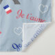 Ilustração perfeita do design de texto de Paris com Torre Eiffel, formas cardíacas tricolor e decoração de bandeira francesa sobre fundo azul para Dia de os namorados
