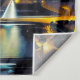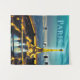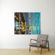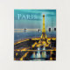 Tapeçaria em uma ilustração impressionista de Paris sob um céu azul-turquesa profundo, com a Torre Eiffel iluminada em amarelo-ouro