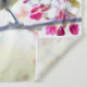 Tapeçaria com uma fotografia incrível do pássaro mais bonito empoleirado em um galho coberto de flores rosa e folhas verdes. O pássaro tem uma cabeça azul e corpo amarelo com um rosto muito doce. Adorável.