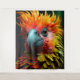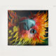 Esta tapeçaria tem um pássaro colorido nela.
