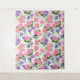 Padrão de aquarela com várias flores e pássaro azul pintado com aquarelas.