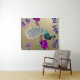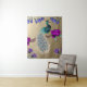 Um pavão colorido é empoleirado num galho adornado com flores vibrantes. O fundo apresenta um tom dourado com detalhes texturizados, melhorando a elegância geral da cena.