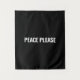 Paz, por favor, texto preto e branco minimalista e simples protesto anti-guerra Tapeçaria. Texto branco personalizado sobre fundo preto.