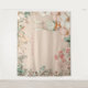 Esta design tem um encanto vintage com um belo coelho a rosa com flores na cabeça a bater atrás de uma borda floral em creme e a borrar com verde num fundo cor de pêssego. Use como pano de fundo para fotos ou fotos ou para um fundo virtual em seu chá de fraldas. O trabalho de arte funcionará em qualquer uma das opções de tamanho de paisagem retangular (mas não no quadrado 57 x 57") Você pode personalizar facilmente o texto para seus próprios detalhes ou excluir o texto, se preferir.