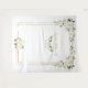 QUALQUER EVENTO! Design moderno e elegante com rosas brancas creme e buquês de hortênsias em aquarela, uma moldura dourada falsa, divisor floral, em fundo branco. Itens correspondentes podem ser encontrados na minha Coleção Flores Brancas em Flor.