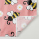 Padrão sem costura com pequenas abelhas voadoras bonitinhas e flores margaridas brancas decorando em fundo rosa.
