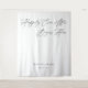 Create a romantic focal point with this elegant “Happily Ever After Begins Here” wedding backdrop. Designed in a graceful flowing script on a clean white background, this minimalist banner adds timeless sophistication to your ceremony or reception space.