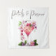 Flores Elegantes de Jardim com Vidro de Champanhe, Berries e texto "Petais e Prosecco" Chá de panela de Sinais de Boas-vindas em cores lilás, lavanda, rosa-pincel, pêssego, damasco e verde.