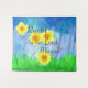 Escrituras de aspas inspiradoras retratam lindos girassóis pintados manualmente contra um céu azul. Apresenta a Bíblia Verse Philippians 4:4, "Rejoice no Senhor Sempre."