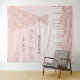 Elegante, clássico, glamoroso e feminino, o banner de chá de noiva, fundo para fotos. Um vestido de rosa dourada com pingentes, aparência de gotejamento de tinta. Gradiente de rosa dourada e branco, fundo ombre. Com o texto: Chá de noiva escrito com um estilo de letra manuscrita moderna em cor rosa escura. Modelo para o nome da noiva e data. Pode ser usado como decoração de parede para o chá de noiva ou como fundo para fotos.