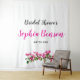 Create a stunning photo focal point with this Pink Bougainvillea Floral fabric backdrop. Featuring vibrant magenta tropical flowers on a crisp white background, this design is the perfect bridal shower decoration for a garden-themed party. The elegant script and botanical accents provide a professional look for the future Mrs to celebrate her special day. This wall hanging is fully editable, allowing you to update the bride's name and event date for a personalized touch. Made for high-quality display, it’s an ideal choice for spring wedding showers and botanical celebrations.
