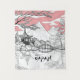 Linda tapeçaria preta, branca e rosa, com pintura em linha de templo japonês, montanha e Sakura florescendo no lago. Este é um presente ideal para o amante da natureza. Uma bela decoração de parede para sua casa e escritório.