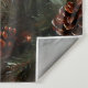 Tapeçaria com uma pintura digital de óleo de um porco giro cercado por pínus cones e pinheiros com luzes de Natal. O fundo da madeira adiciona uma vibração rústica ao trabalho de arte.