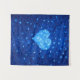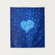 tapeçaria cardíaca azul com uma bela ilustração abstrato de um coração cristalizado feito de pequenos polígonos em diferentes tons de azul. Este na moda geométrico dá uma sensação de frio e de inverno e tem uma sensação moderna.