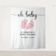 Lindo banner de boas-vindas e fundo para cabine de fotos para o chá de bebê da sua menina com "oh baby" em uma linda fonte com floreios e uma aquarela rosa pastel de pés de bebê. Personalize facilmente com seu nome e data do chá.