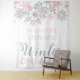 Placa de Boas-vindas para Primeiro Aniversário Onederland de Inverno com flocos de neve rosa bebê e prata.
