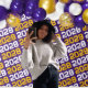 Plano de fundo de tapeçaria de ano de classe repetitiva roxo e Dourado. Faz uma mesa perfeita, mesa de presentes ou cabine de fotos!
