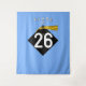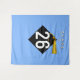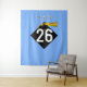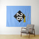 Decoração de fundo com foto de festa de formatura criativa para formandos da Classe '25 com boné preto e dourado sobre fundo azul claro.