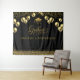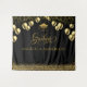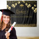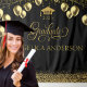 Um cenário elegante e na moda de graduação em ouro e preto. Detalhes Dourados como balões, confete, brilho, boné de formatura, uma fonte de escrita suave e decorativa sobre fundo preto. Fácil de personalizar com os detalhes do seu formando, nome e ano atual, também em ouro. Uma decoração incrível na Festa de formatura e o cenário perfeito para fotos de formatura. Este é um marco e uma celebração para olhar para trás com orgulho.