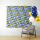 O pano de fundo da tapeçaria repetitiva azul e amarelo faz com que a mesa de presente, a mesa de presente ou a cabine de fotos sejam perfeitas!