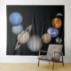 O pano de fundo do sistema solar com os planetas em um fundo preto é excelente desde a decoração astronômica para um quarto infantil até um pano de fundo selfie divertido para uma festa.