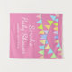Plano de fundo de fotos personalizado para a festa do chá de fraldas. Design alegre com bandeiras coloridas de pennant em uma corda. Excelente para comemorações com amigos e família. Adicione o seu próprio texto personalizado para celebrar o seu recém-nascido. Bons suprimentos para festas de crianças. Fundo de cor rosa ou personalizado.