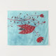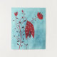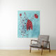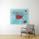 Ttapeçaria de arte horrorosa com uma ilustração carnívora assustadora, que mostra uma flor vermelha e estranha, com muitos olhos sobre o fundo azul esbelto, texturizado.