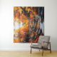 Pintura cênnica de uma ponte de pedra sobre um fluxo fluente cercado por uma vibrante folhagem de outono.