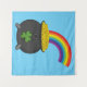 Uma ilustração cartoon do pote de ouro no final do arco-íris com folha de shamrock verde para Ruas. Comemoração do Dia de Patrick. Este cheio de moedas de ouro é uma ideia-presente para amantes do tema irlandês e entusiasta do tesouro irlandês. Pegue o duende e pegue seu ouro!