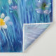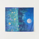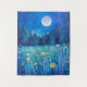 Tapeçaria em uma paisagem aquática de um campo de flores silvestres e uma floresta escura sob uma lua de cheio