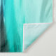 Tapeçaria em uma praia com água turquesa, nas ilhas Caribes, com um céu azul profundo de verão e nuvens brancas lisas e fofinhas