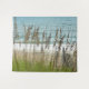Esta é uma fotografia de uma praia e um pouco de grama duna.