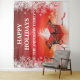Traga o espírito do Natal para sua casa ou escritório com este lindo banner em vermelho, branco e dourado falso, apresentando uma linda caixa de presente vermelha que foi aberta e tem faíscas brancas flutuando para fora do topo. As fitas da caixa foram desamarradas e a tampa levantada para revelar uma pluma branca em cascata de faíscas. A caixa de presente repousa contra uma superfície branca brilhante acima da qual há um fundo vermelho com grandes modelos brancos para seu cumprimento de Natal e desejos de sua família ou empresa. Cada lado do cenário é preenchido com delicados flocos de neve brancos. Este design festivo é perfeito para a temporada de férias.