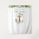 Pano de fundo para cabine de fotos da primeira comunhão elegante. Design neutro em termos de gênero, ótimo para meninas e meninos. Bela exibição que une o seu tema, ótimo como peça decorativa como pano de fundo para fotos ou atrás da mesa de sobremesas. Belo crucifixo dourado com arco dourado com folhagens e flores brancas e amarelas douradas. Borda decorativa elegante no topo com folhas verdes e algumas flores em uma mistura de tons verdes, brancos, dourados, amarelos e cinzas. Convites para primeira comunhão coordenados, além de uma grande variedade de produtos para eventos disponíveis. Parte da nossa "Coleção de Papelaria Floral e Greenery da Eternidade".