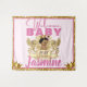 Pano de Fundo para Fotos da Princesa Africana Real Rosa|Dourado apresenta adorável princesa étnica usando uma coroa dourada; cercada por fundo dourado brilhante e moldura rosa com texto rosa. Perfeito para um Chá de Bebê da Princesa Real ou Anúncio de Nascimento da Princesa Real ©2021 Miss Sassy Party Designs