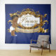 Adorável Príncipe Afro-Americano vestindo fralda branca, chinelos azuis e coroa dourada em uma moldura dourada elegante com um fundo azul real. Estandarte personalizado com seu próprio texto. Ótimo para um Chá de Bebê do Príncipe Real, 1º Aniversário do Príncipe Real ou Batismo ©2022 Miss Sassy Party Designs